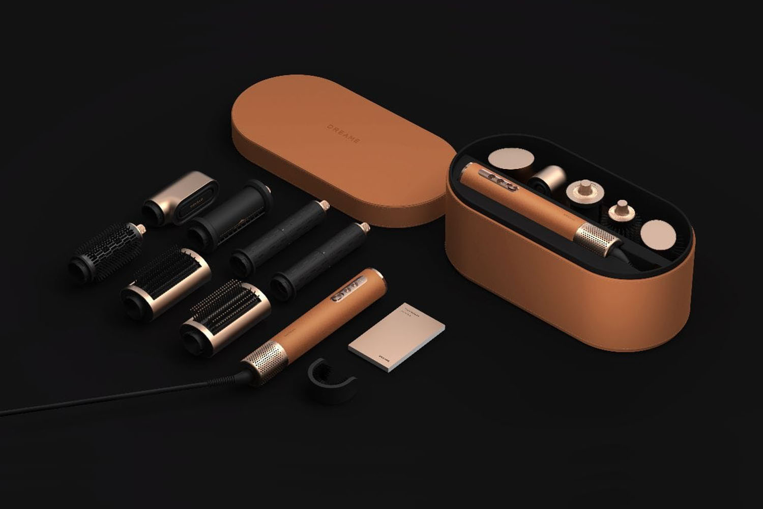 Кожаный кейс, в котором размещаются и сам стайлер, и семь разных насадок, делает этот девайс вполне претендентом на премиум сегмент. Поток воздуха скоростью аж 60 м/с может быть как горячим, так и холодным, что делает фиксацию укладк крепче и долговечнее. Плюс — позволяет избежать повреждения и перегрева волос. Насадки легко и просто меняются с помощью магнитной защелкивающейся конструкции, шнур — специальный, нескручивающийся, а рукоятка из кожи тактильно приятна.