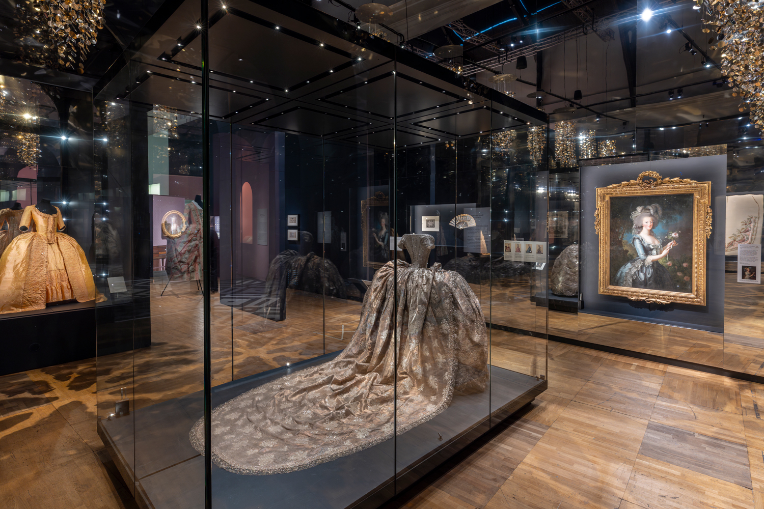 На лондонской выставке образ Марии-Антуанетты раскрывается через самые разные вещи: от парадных портретов и исторических нарядов и драгоценностей до легендарных fashion-съемок с Кейт Мосс. Платьев здесь десятки, и любоваться ими в деталях – особое удовольствие. Уж в чем, а в том, как одеваться, королева знала толк.