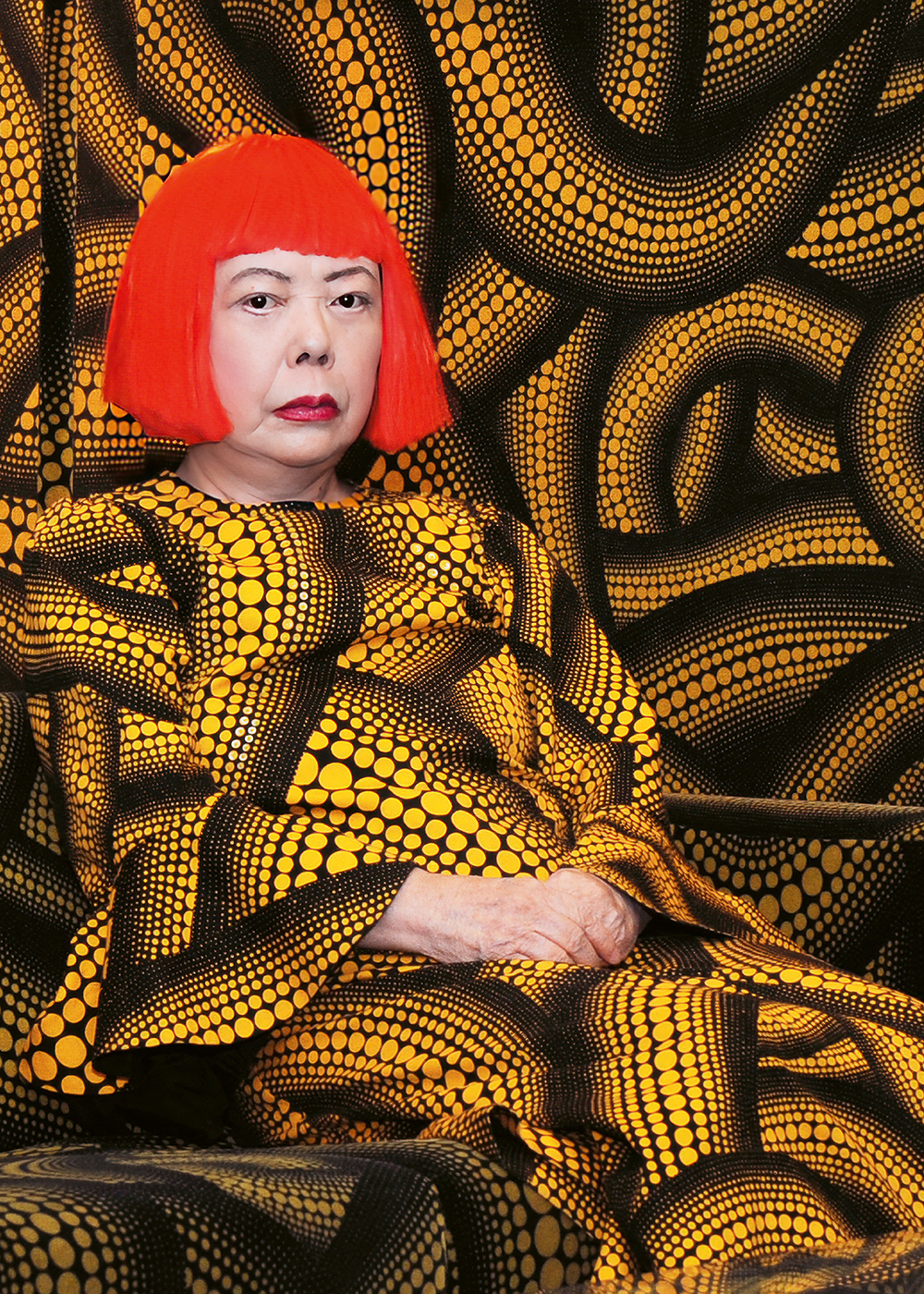 Японку знают прежде всего по скульптурам в виде тыкв, расцвеченным яркими принтами в горошек (Кусаму часто называют Polk Dot Queen, «королевой горошка») и экстравагантным инсталляциям с зеркалами, многократно умножающими все, что происходит внутри комнаты. А еще Кусама – икона стиля, которой под 100, и дама непростой судьбы, по своей воле уже не один год живущая и работающая в психиатрической клинике. По ее собственным словам, вдохновение она черпает в галлюцинациях, которые видит на протяжении всей жизни.