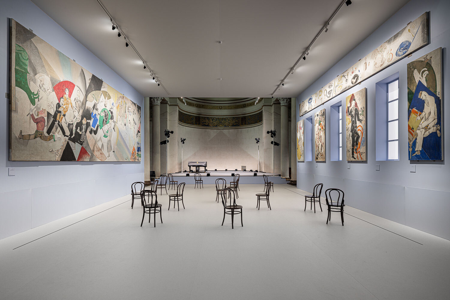 Это первая масштабная моновыставка М. Шагала в ГМИИ им. А.С. Пушкина почти за четыре десятилетия. В прошлый раз, в 1987 году, здесь отмечали столетие художника, тогда экспозиция представляла собой масштабную ретроспективу, показывающую путь от ранних работ из Витебска, до зрелых произведений, написанных в Париже. Сейчас же все внимание кураторов сконцентрировалось исключительно на русском периоде творчества художника.