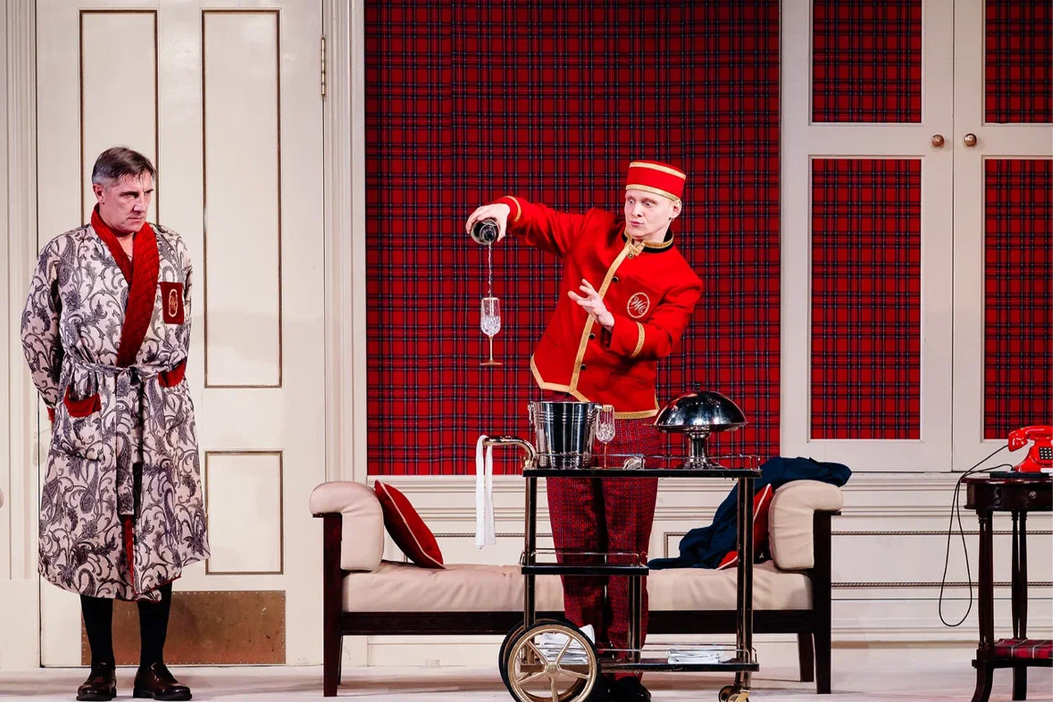 Прошло ровно полгода, как отыграли последний «№13 D» в МХТ — и вот, гостиничный номер с обоями в шотландскую клетку уже перенесен на сцену театра «Современник», на афишах которого значится «ТОТ самый №13», получивший свое новое имя в честь Театра Олега Табакова. Чем не ход конем, чтобы в театре на Чистопрудном бульваре снова забурлила жизнь и вернулись аншлаги? Владимир Машков, худрук обоих театров, явно делает на это ставку — недаром специально к этому спектаклю пошили форму гардеробщикам и сделали занавес-тартан.