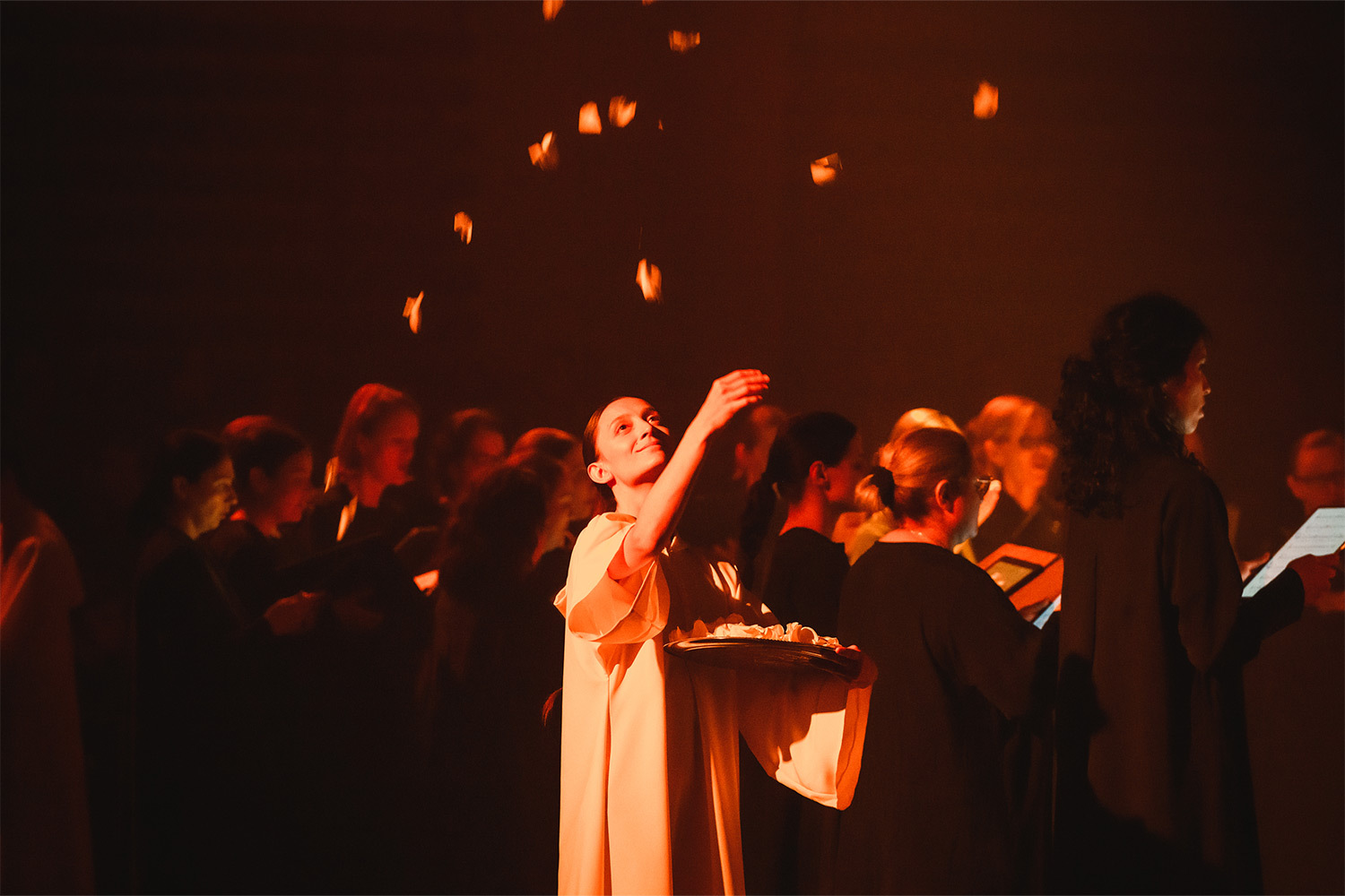 А нтология духовной музыки десяти веков в исполнении оркестра и хора musicAeterna, режиссура Анны Гусевой и хореографическая интерпретация Айсылу Мирхафизхан — все это новая программа под руководством Теодора Курентзиса.