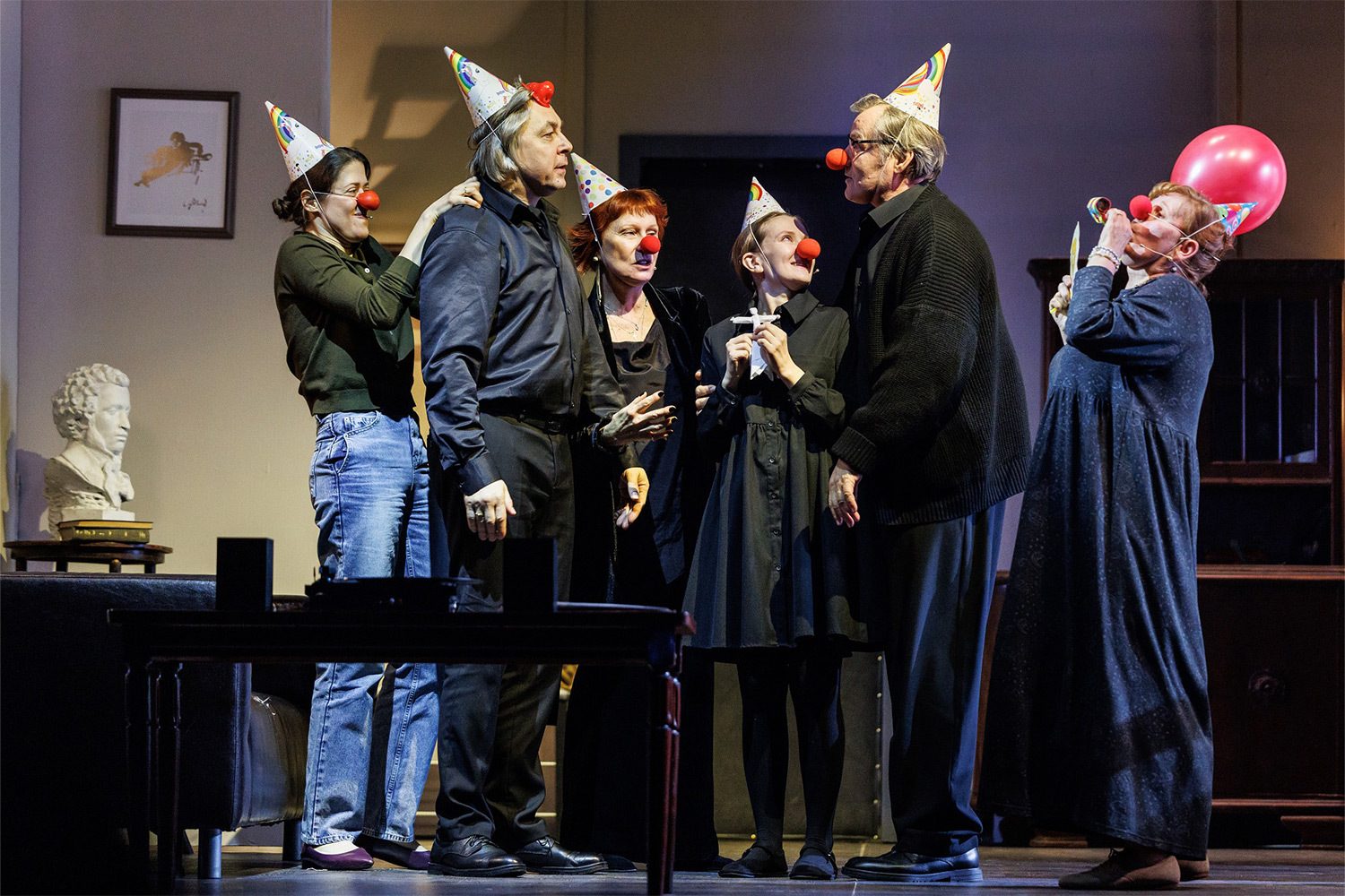 Дядя Ваня (блестящая работа И. Гордина) — талантливый математик, променявший карьеру ученого на унылую жизнь продавца помповых насосов. Ведь кто-то же должен содержать весь этот балаган! И его молчание — а он молчит большую часть спектакля, его взгляд, обращенный внутрь себя, говорит о страданиях и о тоске по бесцельно прожитой жизни гораздо больше, чем бурные монологи его близких.