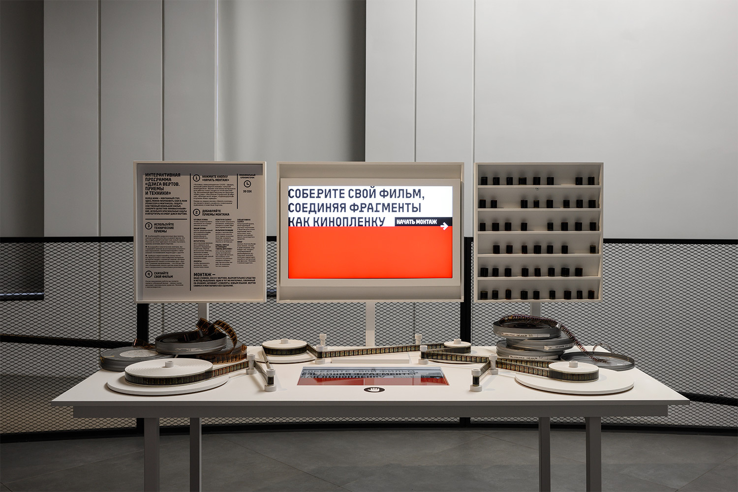 Интерактивный монтажный стол позволит создать авторскую склейку из предложенных кадров и интертитров, а финальная локация выставки предлагает вдохновиться приемами Дзиги Вертова, снять и смонтировать небольшой ролик на собственный смартфон, который сможет стать частью экспозиции.