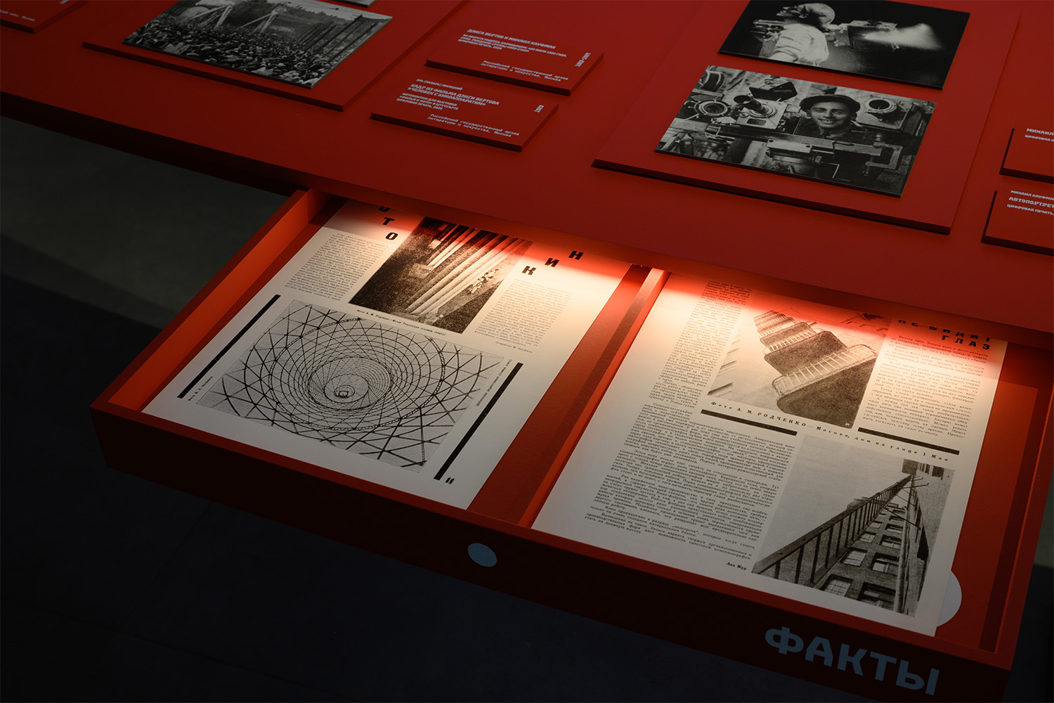 Выставка «Дзига Вертов. Киноглаз» в Центре «Зотов», посвященная 130-летию советского режиссера, дает уникальную возможность погрузиться в его художественное наследие и проследить путь развития кинематографа вплоть до наших дней. Экспозиция построена по принципу закручивающейся кинопленки, на которой хронологически разворачиваются главные события творческой биографии Дзиги Вертова, проиллюстрированные фильмами, фотографиями, анимацией, архивными материалами, отрывками из дневников и киножурналов.