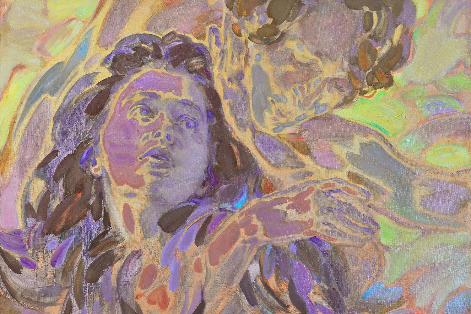 Ксения Сандеско, еще одна яркая и узнаваемая молодая художница, пишет не людей, а персонажей. Они не с натуры и не из конкретных историй. У них другая задача: нести то, что художница в них закладывает — свет, любовь, радость. У Сандеско живопись держится на цвете и движении кисти. Фигуры почти растворяются в переливах, лицо и руки «собираются» из мазков. Такие работы цепляют не сюжетом, а тем, как они воздействуют физически: цветом, ритмом, темпом.