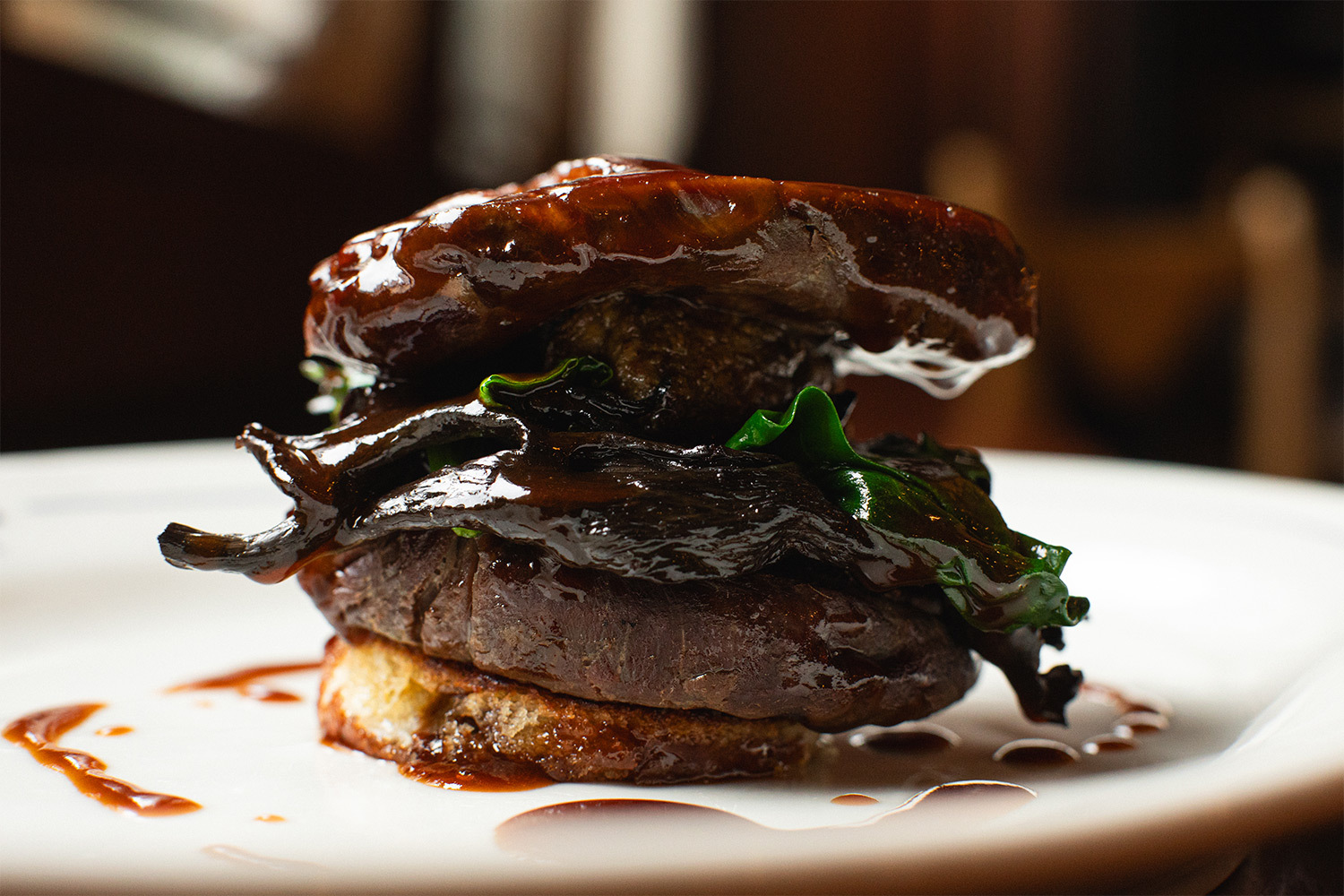 Любителям пасты стоит попробовать ригатони alla vodka с молодым сыром качорикотта — насыщенное блюдо с мягкой сливочной текстурой. А из раздела бистро-классики — филе Россини: нежная телячья вырезка с фуа-гра с выразительным ореховым вкусом. К стейкам, как и положено, подают стейковые ножи.