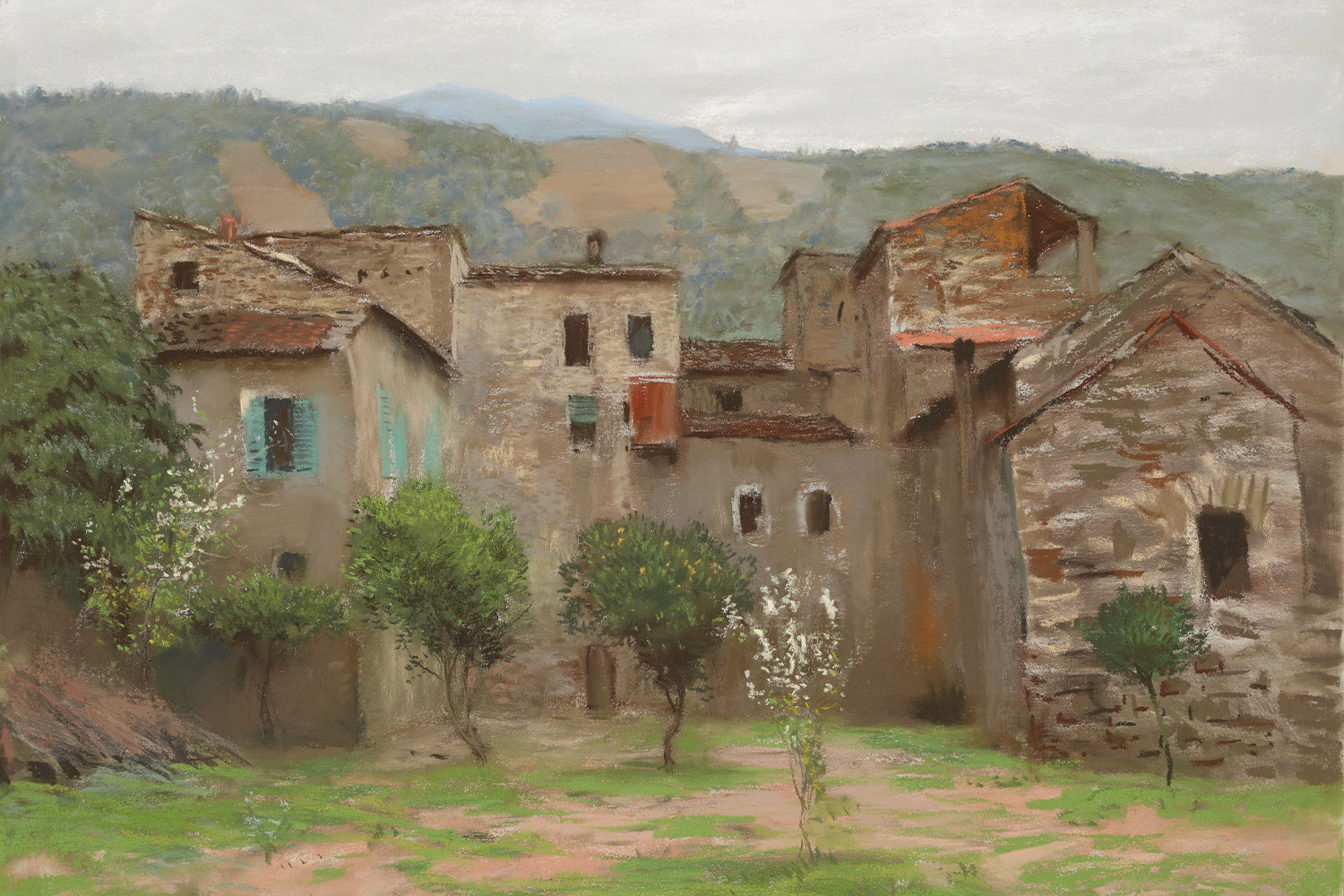 Новый виток интереса к пастели возникает на рубеже XIX и XX веков, в особенности среди художников объединения «Мир искусства». Зал, посвящённый русскому пейзажу, объединяет мастеров совсем разных художественных поколений, работающих в русле одной традиции. Необъятные просторы Исаака Левитана перекликаются с более камерными садовыми зарисовками раннего Михаила Ларионова, а мокрые крыши Елены Поленовой – с почти парижскими у Марии Якунчиковой.