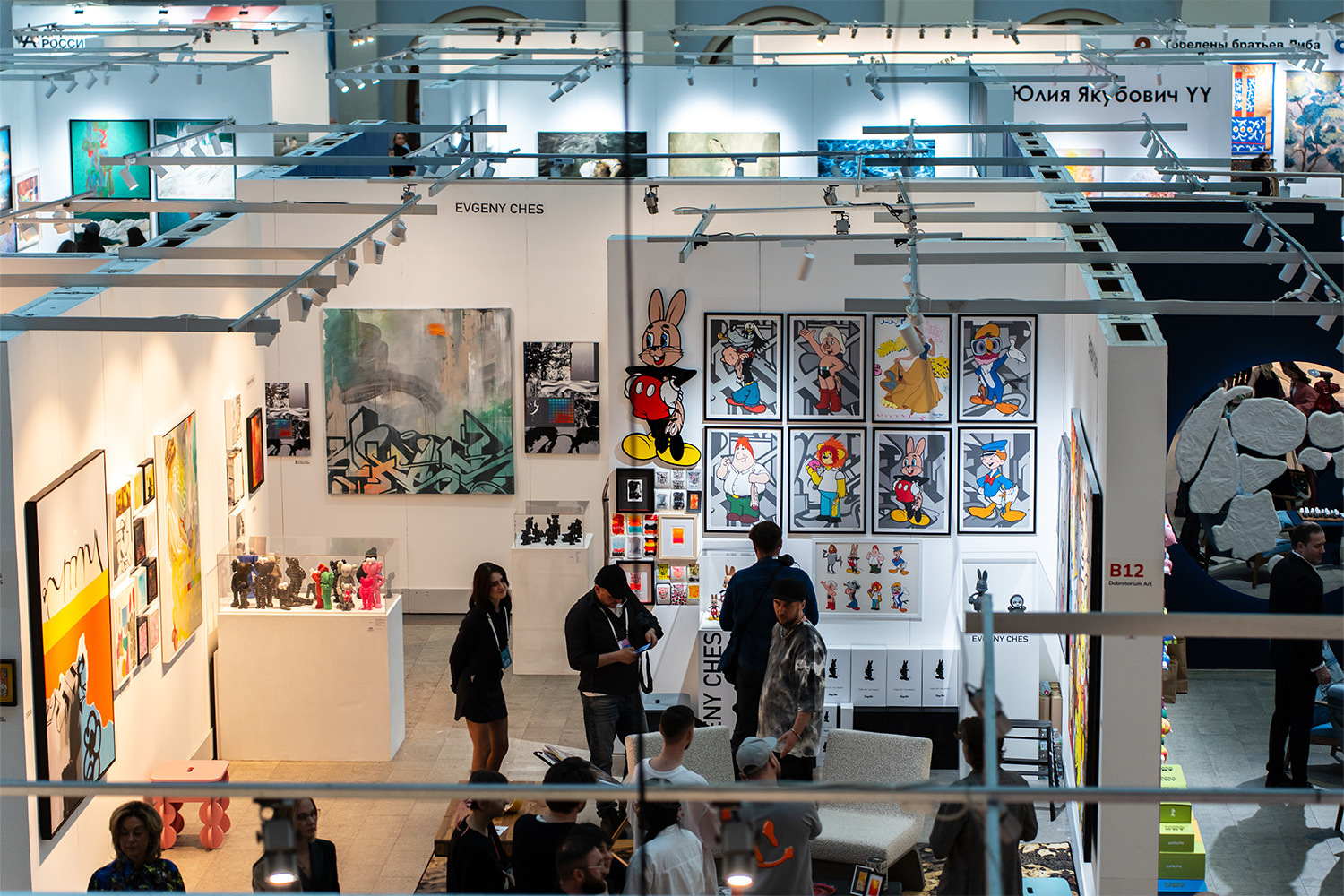 Среди заметных участников ярмарки — Bad Gallery, которая выводит на первый план энергию улицы. На ее стенде показывают работы Ильи Sario, Евгения Старова и Ильи Брезинского: экспозиция балансирует между грубой уличной фактурой и строгой галерейной подачей, а интерес к намеренной неидеальности становится здесь главным жестом.