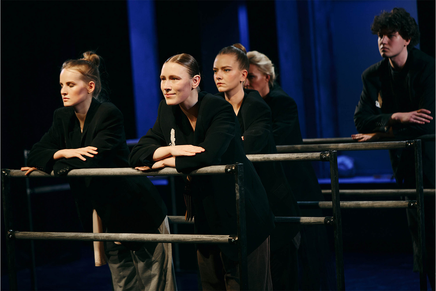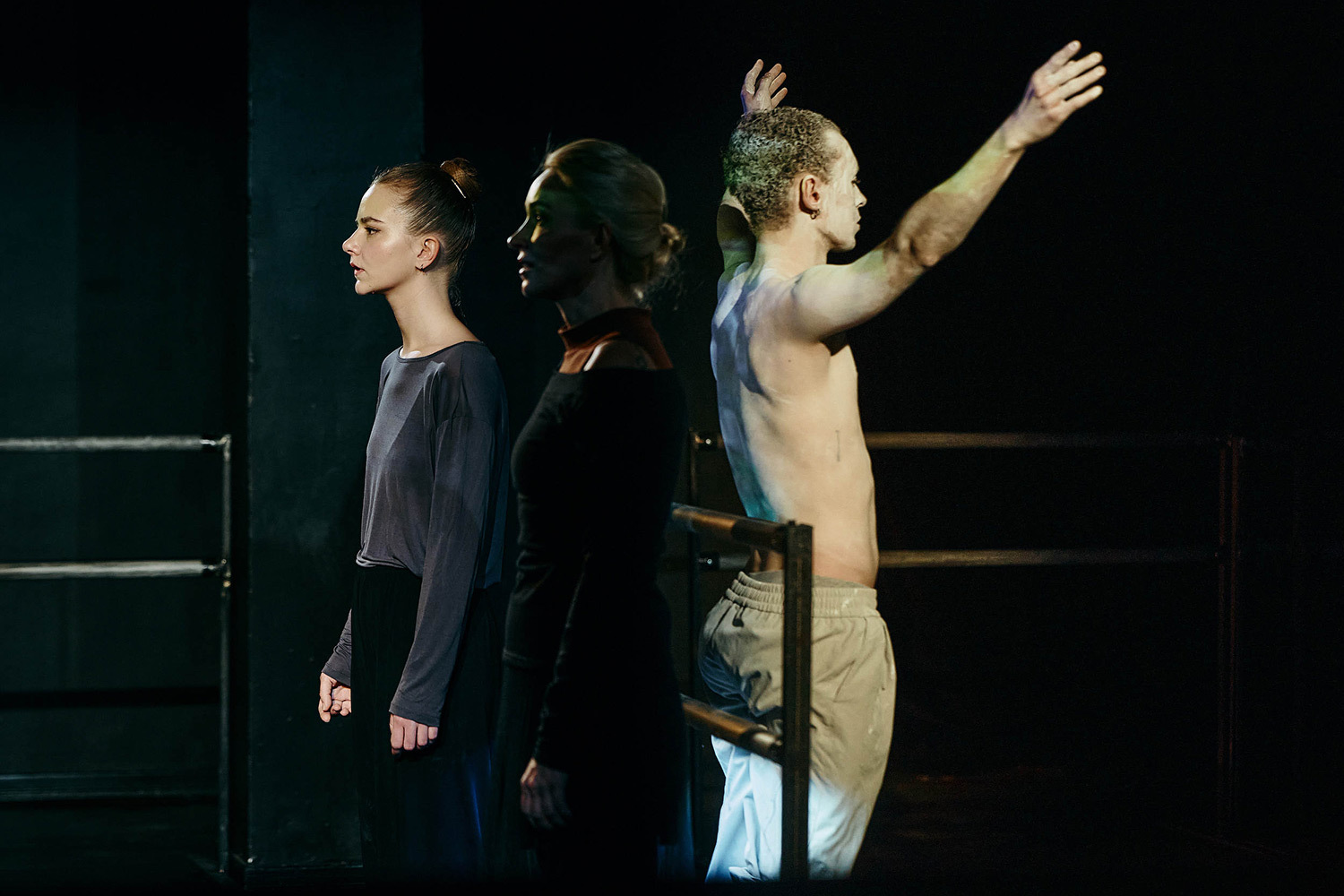 С пектакль, поставленный Денисом Парамоновым по мотивам одноименного романа Аси Володиной, начинается как балетный класс — с разминками и растяжками вышколенных танцовщиц, а значит, речь сейчас пойдет о дисциплине и подчинении.