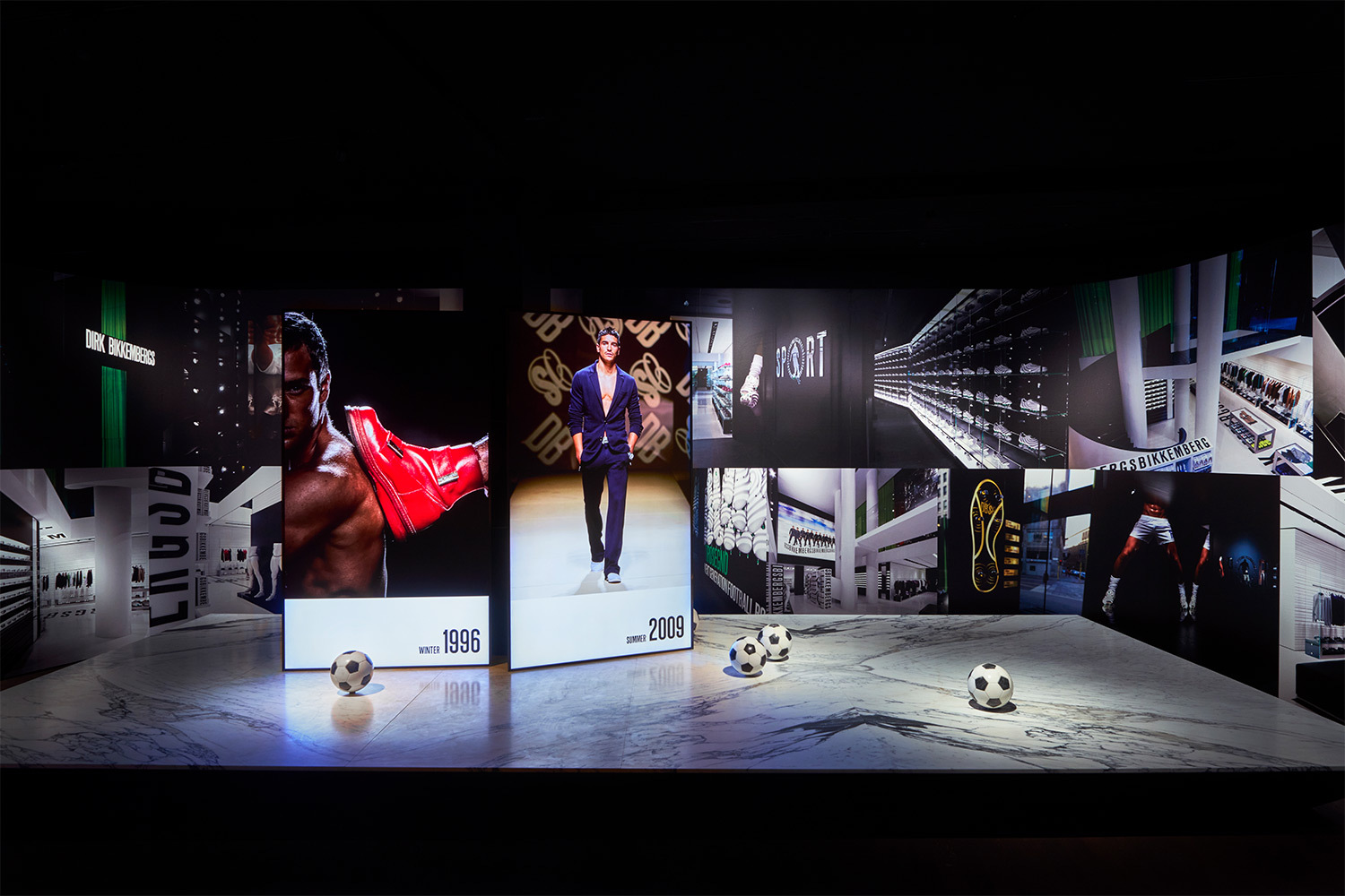 Биккембергс заполнил свой зал модной фотографией — образами, которые он создавал годами с маниакальной последовательностью. Ван Нотен выстроил чувственную экспозицию из десятков силуэтов: сложная вышивка, фирменные цветовые сочетания и характерные силуэты сопровождаются видеозаписями его показов. Демельмейстер представила медитативный ряд черных силуэтов из разных коллекций, еще раз подтверждающих ее репутацию архитектора среди дизайнеров. В зале Ван Саена конвейер с движущимися манекенами стирает границу между подиумом и зрителем. Ван Бейрендонк устроил столпотворение манекенов в безумных принтах под гигантским экраном, где его альтер эго ведет диалог с самим дизайнером. Зал Марины Йи — особый: она умерла в ноябре 2025 года, и кураторы воссоздали ее антверпенскую мастерскую, отдав дань памяти.