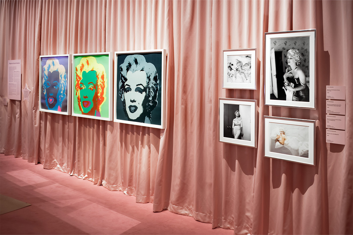 Вторая линия — разбор самого мифа. Архив рекламных материалов, журнальных обложек и фотосессий показывает, как индустрия последовательно создавала сексуализированный образ «наивной блондинки». Этот образ оказался настолько устойчивым, что пережил саму актрису и стал основой для бесконечных интерпретаций — от Энди Уорхола до современной поп-культуры.