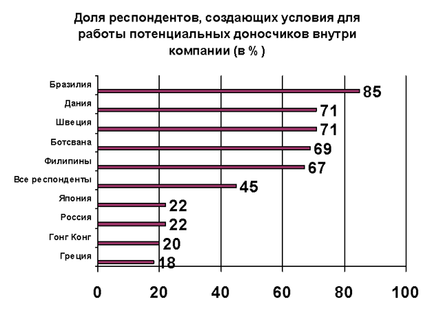 Компаний, поощряющих доносы, больше всего в Латинской Америке – 68%, меньше всего – 29% – в Восточной Азии (исключая КНР, где вопрос не задавался) (см. график).