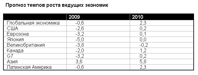 МВФ изменил прогноз темпов роста мировой экономики в 2009 году: вместо роста на 0,5% ожидается сокращение на 0,6%. Пересмотр прогноза связан с тем, что статистика за четвертый квартал оказалась хуже ожиданий экспертов фонда, и тем, что странам удается медленнее, чем предполагал МВФ, справляться с проблемными активами.