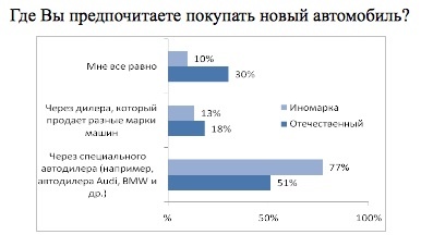 Новые машины россияне в прошлом году чаще покупали в салонах автодилеров, продающих авто определенной марки (77% против 55% годом ранее), утверждают специалисты Агентства маркетинговых исследований Profi Online Research и портала auto.ru, опросив 1000 российских автовладельцев.