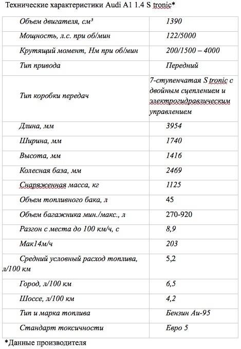 Но особенно гордятся разработчики мультимедийной системой. На «единичку» можно поставить комплекс MMI Navigation Plus, созданный по аналогии с оборудованием самых дорогих Audi. Тут вам и жесткий диск на 60 Гб, и трехмерная навигация, и DVD-привод, и еще масса полезных функций. Правда, платить за всю эту роскошь придется по отдельному счету – в более доступных версиях А1 аудиосистема попроще. Панель приборов оснащена мягкой подкладкой, все клавиши легко нажимаются, тумблеры четко поворачиваются и реагируют на команды. Для всех пассажиров предусмотрены вещевые отсеки. Багажник невелик - всего 267 литров, однако, откинув спинку заднего сиденья, его объем можно увеличить почти до 920 л. Причем крышка багажника открывается прямо с пульта.
