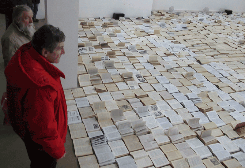 Две галерейные выставки на «Винзаводе» – с букинистическим и с парфюмерным уклоном – говорят о вечном: о магии и избыточности словИнсталляцию Алексея Подкидышева и Игоря Чаркина «Шепот» описать легко – пол галереи XL выстлан раскрытыми книгами. Они дружно шелестят, понуждаемые не сразу заметными вентиляторами. Можно посмотреть на это волнующееся море (или большую лужу) книг и пойти дальше, можно зависнуть, вглядываясь и вслушиваясь: красиво, успокаивает. Наконец-то слышишь музыку, про которую только знал, что она есть.