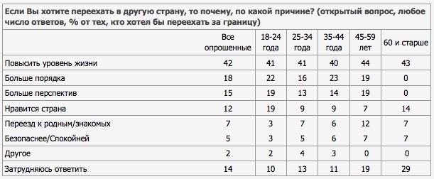 Если Вы хотите переехать в другую страну, то почему, по какой причине? (открытый вопрос, любое число ответов, % от тех, кто хотел бы переехать за границу)