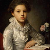 Портрет Шарля-Этьена де Буржевена де Вьялара, графа де Сен-Мориса, написанный Жан-Батистом Грезом во второй половине XVIII века, – это портрет в его классическом понимании. Мальчик в атласном костюме с оборками, преисполненный чувства собственного достоинства, сидит за столом над раскрытой книгой и смотрит на художника вполоборота, как будто тот оторвал его от важных занятий. Несмотря на то что портрет явно удавался Грезу лучше всего (к слову, его самая знаменитая картина «Гитарист» также находится в музее Нанта), он всю жизнь мечтал из жанрового живописца сделаться живописцем историческим – ведь именно историческая живопись считалась главной в иерархии Французской академии.