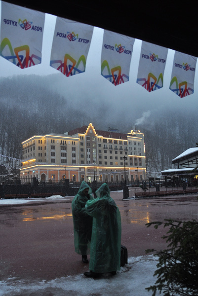 В горном кластере строительство гостиниц идет ускоренными темпами, и объекты сдают чуть ли не в режиме онлайн, но об инфраструктуре пока речи нет: на «Розе Хутор» только один продуктовый магазин. До него надо топать пару сотен метров по обочине дороги, стараясь не принять грязевую ванну от очередной фуры. А вот аптеки нет – пока есть только вывеска. При этом по берегам реки Мзымта уже открылись несколько отелей, в том числе Radisson, Tulip Inn, Heliopark. Мой новый знакомый прав: живут там только участники предолимпийских стартов. А во время непосредственно Игр-2014 поселятся официальные лица, VIP-гости и обслуживающий персонал. Их будет много, а уже сейчас понятно, что место не резиновое.