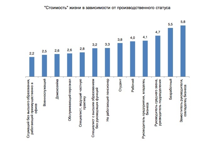 "Стоимость" жизни в зависимости от производственного статуса ("Росгосстрах")