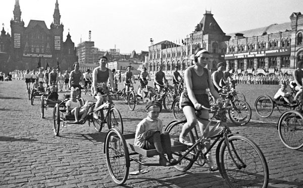 велосипедисты на Красной площади в 1930-м