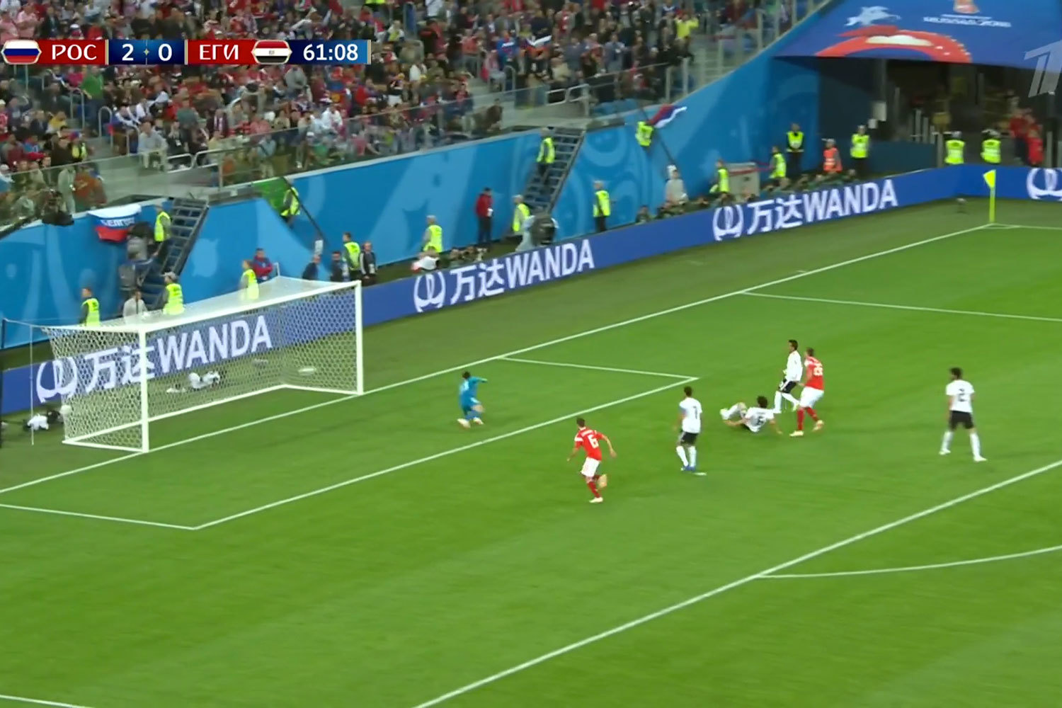 22.04 Счет открыт, и это автогол! После удара Романа Зобнина защитник египтян Ахмед Фатхи срезал мяч в свои ворота.
