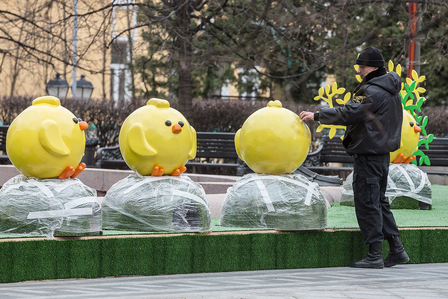 Москву украсили яйцами, цыплятами и клумбами