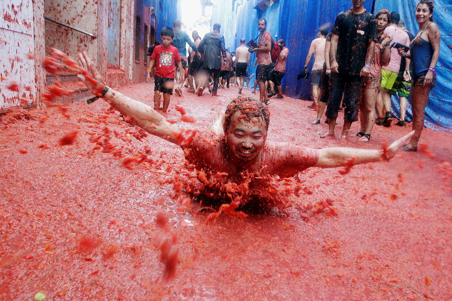 Rajanish Kakade / AP15 августа 2017 г. Индийская молодежь формирует человеческую пирамиду, чтобы дотянуться до «Дахи ханди» - глиняного горшка, наполненного творогом и висящим над ними, в рамках празднования фестиваля Джанмаштами в Мумбае. Фестиваль знаменует рождение индусского бога Кришны, и эта традиция основана на истории о том, как Кришна крал масло в детстве