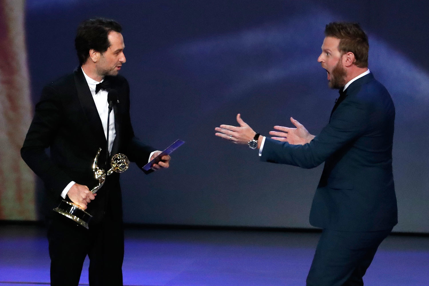 Chris Pizzello/Invision/APЛучшим реалити-шоу стали «Королевские гонки РуПола» канала VH1. Это телешоу о том, как мужчины соревнуются за право называться новой суперзвездой дрэга: танцуют, шутят, шьют костюмы и экспериментируют с макияжем. РуПол (на фотографии в центре) — телеведущий, актер, певец и самая известная дрэг-королева планеты - два предыдущих года подряд выигрывал «Эмми» как лучший ведущий реалити-шоу