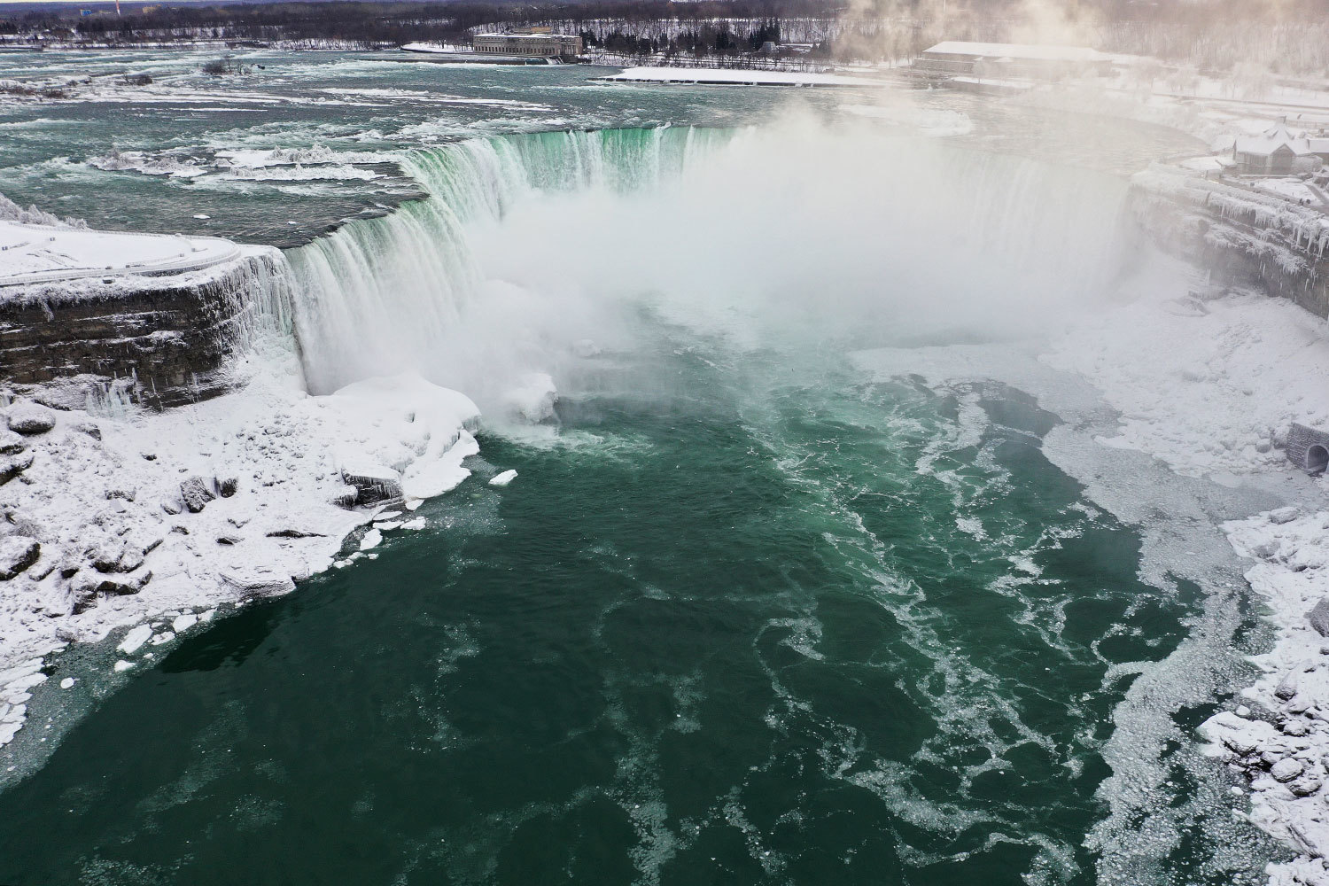 Но из-за совокупного объема воды и течения реки полное замерзание Ниагары практически невозможно, уточняется на сайте Niagara Falls