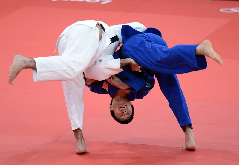 Дзюдо. Россиянин Мансур Исаев (в белом) ведет поединок против испанца Киеси Уэмацу