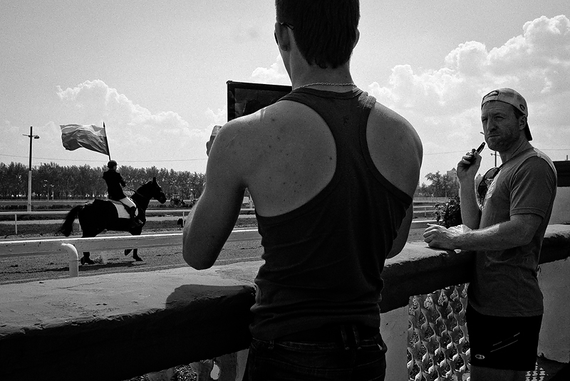 На Центральном московском ипподроме в воскресенье открылся летний скаковой сезон. На старт вышли 62 участника, минимальная ставка была 100 рублей. Специально для Пятницы фотограф Мирослав Робка отправился на Беговую, чтобы посмотреть на породистых скакунов, жокеев, азартных завсегдатаев и шляпки посетительниц.