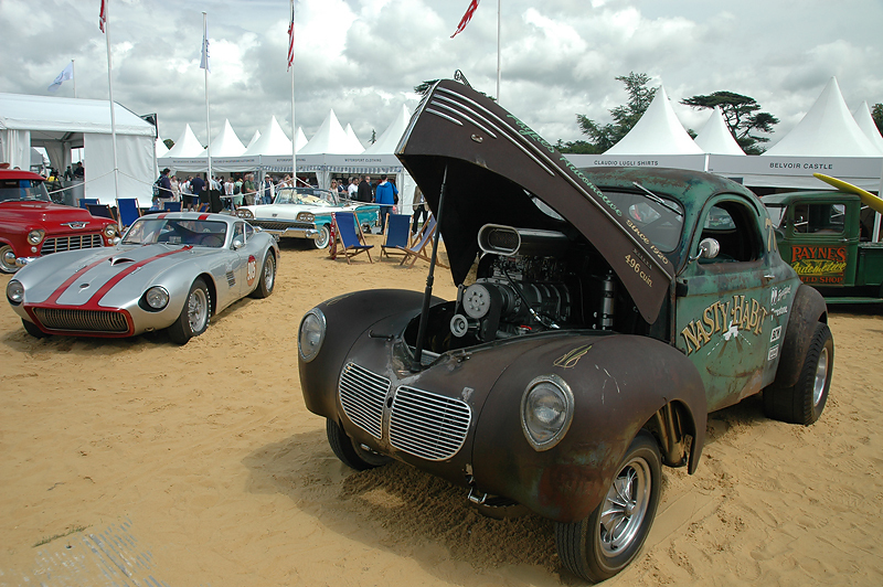 На извилистой двухкилометровой асфальтовой дороге возле замка Гудвуд в Западном Сассексе с 1993 года каждый июнь-июль один уик-энд проходят показательные заезды спортивных машин Goodwood Festival of Speed. Периметр трассы, как дерево корой, обложен кубами прессованной соломы, выполняющей роль отбойников безопасности. От трассы отходят «ветви» - паддоки, зрительские трибуны, площадки с навесами для олдтаймеров, павильоны производителей машин и мотоциклов, мини-выставки и аукционы, торговые палатки, ресторанчики - из всего этого и состоит Гудвудский фестиваль скорости. За выходные его посещают около 200 тысяч человек.