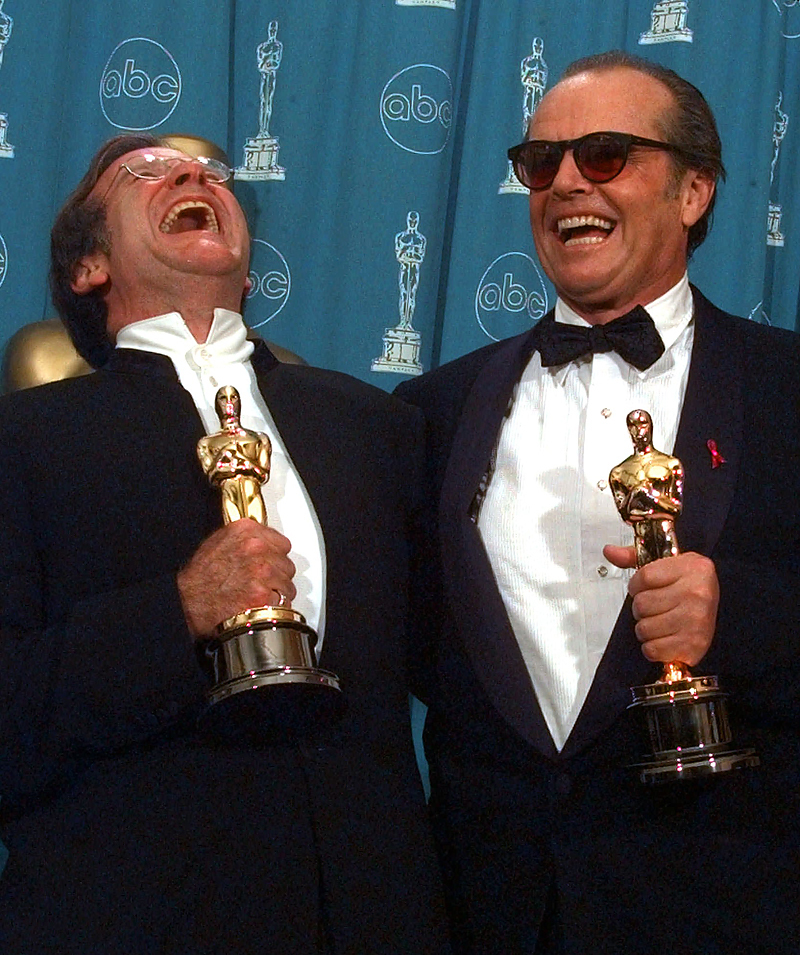 С Джеком Николсоном на церемонии вручения премий Оскар, 1998 г. Робин Уильямс получил награду за лучшую мужскую роль второго плана в фильме "Умница Уилл Хантинг"