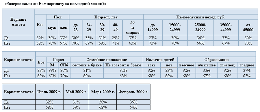 32% россиян признались, что им в июне задерживали зарплату, сообщают аналитики Исследовательского центра Superjob.ru, опросив 15-17 июля 3200 работающих респондентов старше 18 лет во всех административных округах России. Впрочем, по данным прежних аналогичных опросов, число недовольных сроками выплаты зарплаты снижается: в феврале на задержку жаловались 36%, а в мае – 38%.