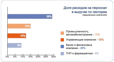 Доля расходов на персонал в выручке по секторам экономики (KPMG)