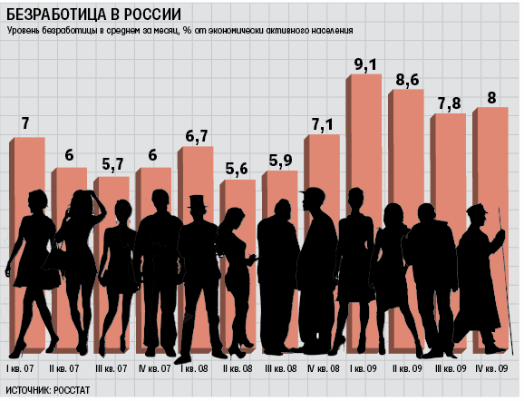 За кризисный 2009 год работу в России потеряли 1,6 млн человек, уровень безработицы увеличился на треть, отчитался Росстат. Европе и Америке кризис стоил еще дороже