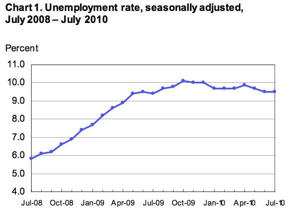 В июле армия американских безработных выросла на 131 000 человек, главным образом за счет прекращения кампании по переписи населения, где были задействованы 143 000 временных служащих. Минтруд США насчитал в июле 14,6 млн безработных, что составило 9,5% экономически активного населения. Таким образом, уровень безработицы за месяц не изменился.