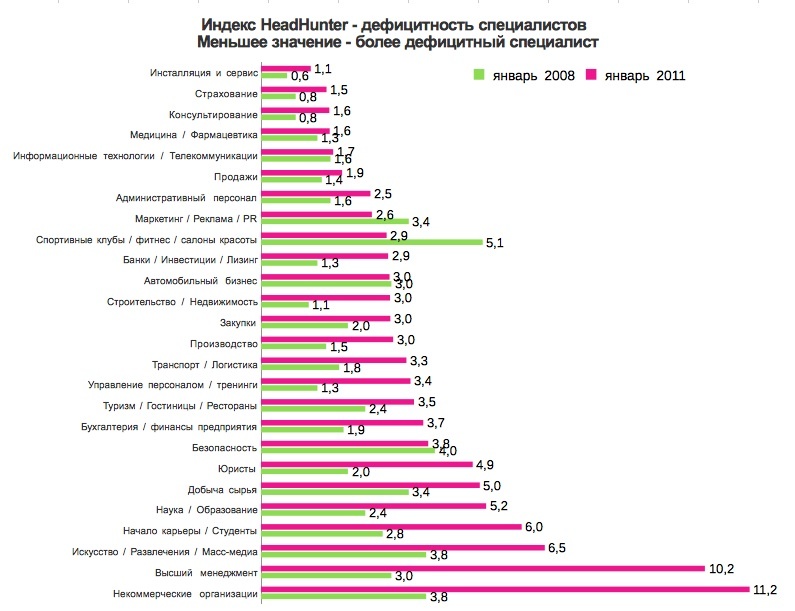 Рейтинг востребованности специалистов (HeadHunter)