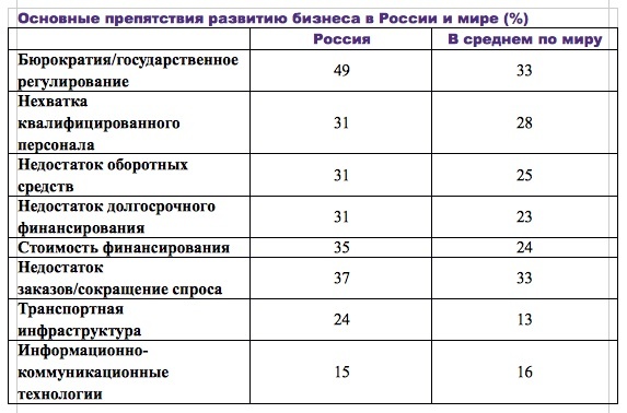 Основные препятствия развитию бизнеса в России и мире (Grant Thornton International)