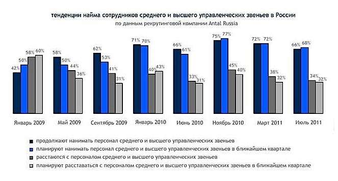 Тенденции найма сотрудников среднего и высшего звена в России 2009 - 2011 гг. (Antal International)
