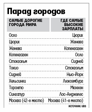 Самые дорогие города мира — Осло, Цюрих и Женева, показало исследование UBS «Цены и заработки — 2011» по 73 городам. Год назад на 3-м месте был Копенгаген. Лидеры по зарплатам — те же: Цюрих, Женева и Копенгаген, но последний сместился с первой позиции на третью.