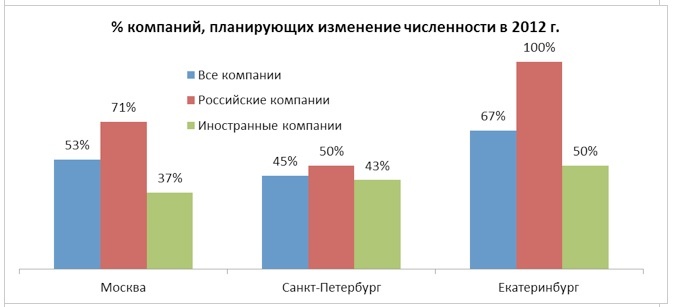 Планы по изменению численности персонала компаний в 2012 г. (Adecco)