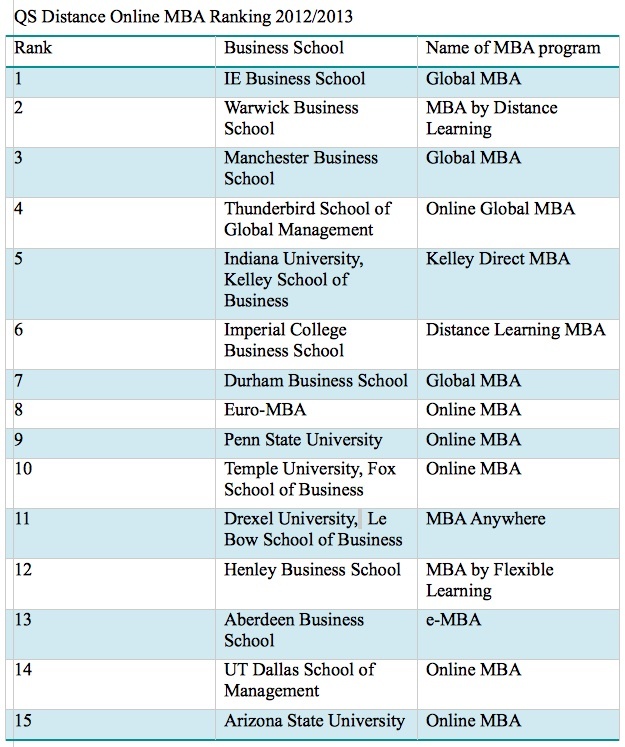 Топ-15 QS Distance Online MBA Ranking 2012/13