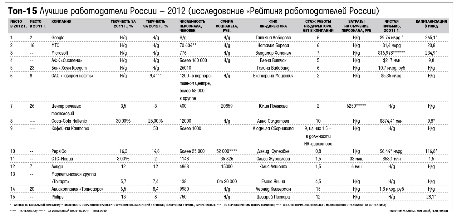 Среди самых свежих примеров – лидерство в топ-100 лучших мировых работодателей журнала Fortune, рейтинге самых востребованных работодателей LinkedIn и рейтинге The World's Most Attractive Employers 2012.