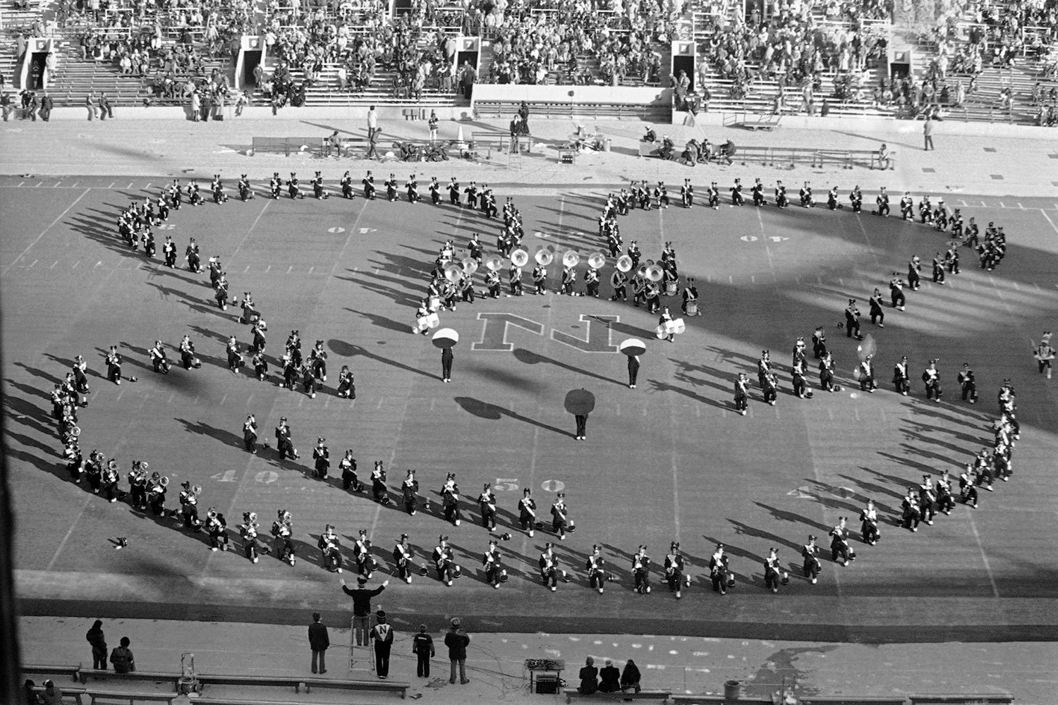 Университетский оркестр изображает Микки Мауса во время перерыва в игре против штата Мичиган в Эванстоне (штат Иллинойс) 18 ноября 1978 г. в преддверии 50-летия персонажа.