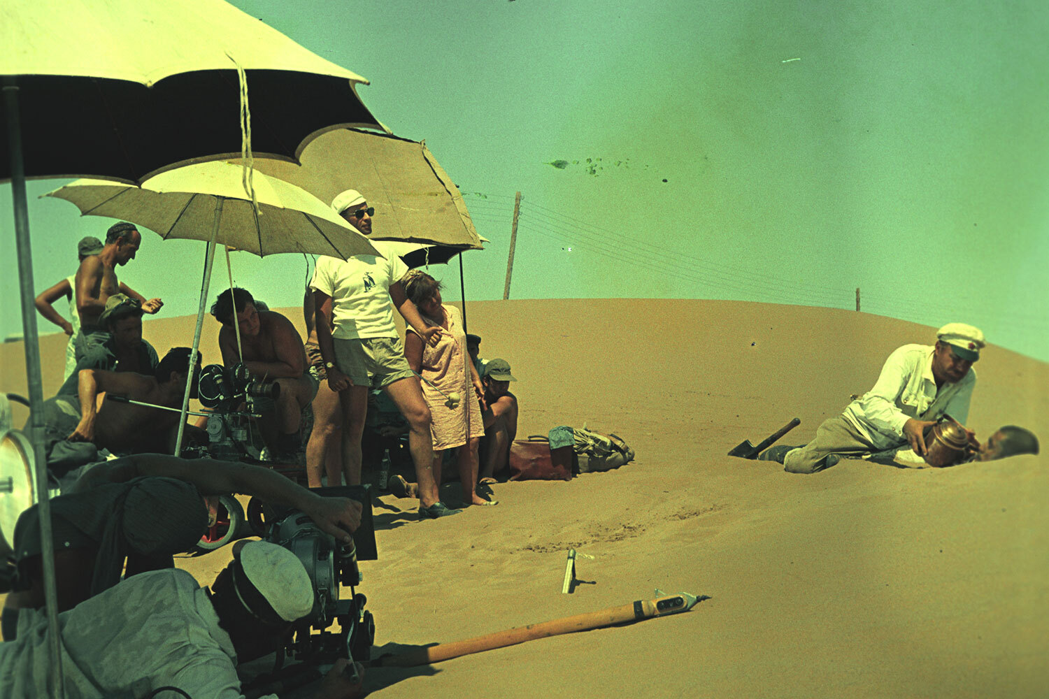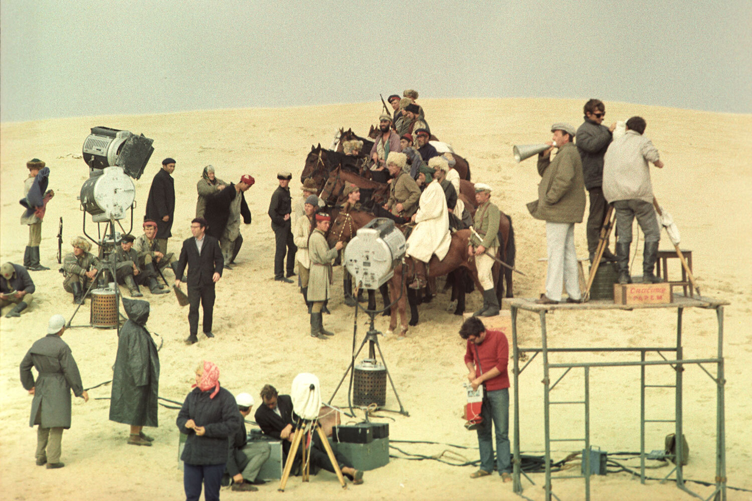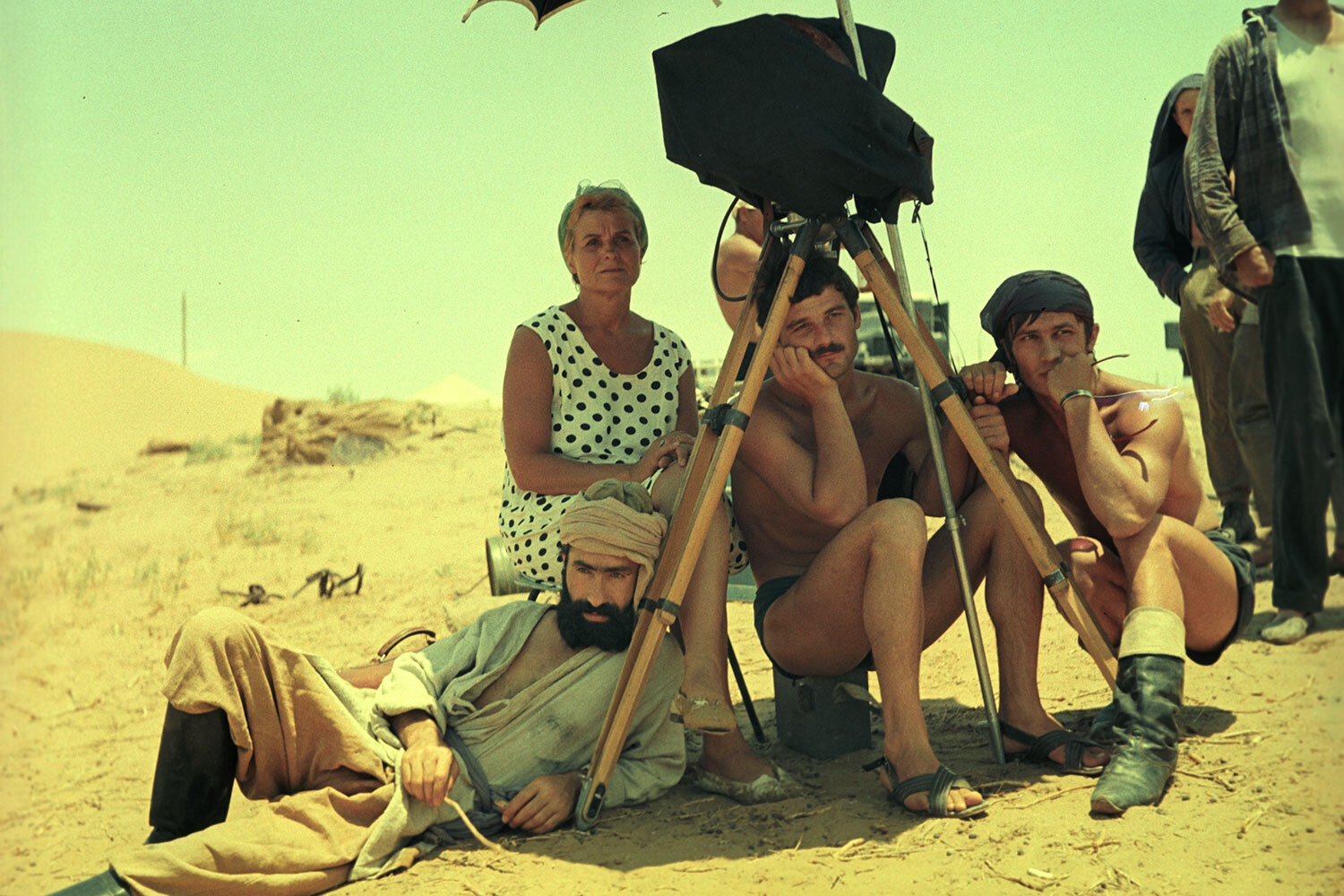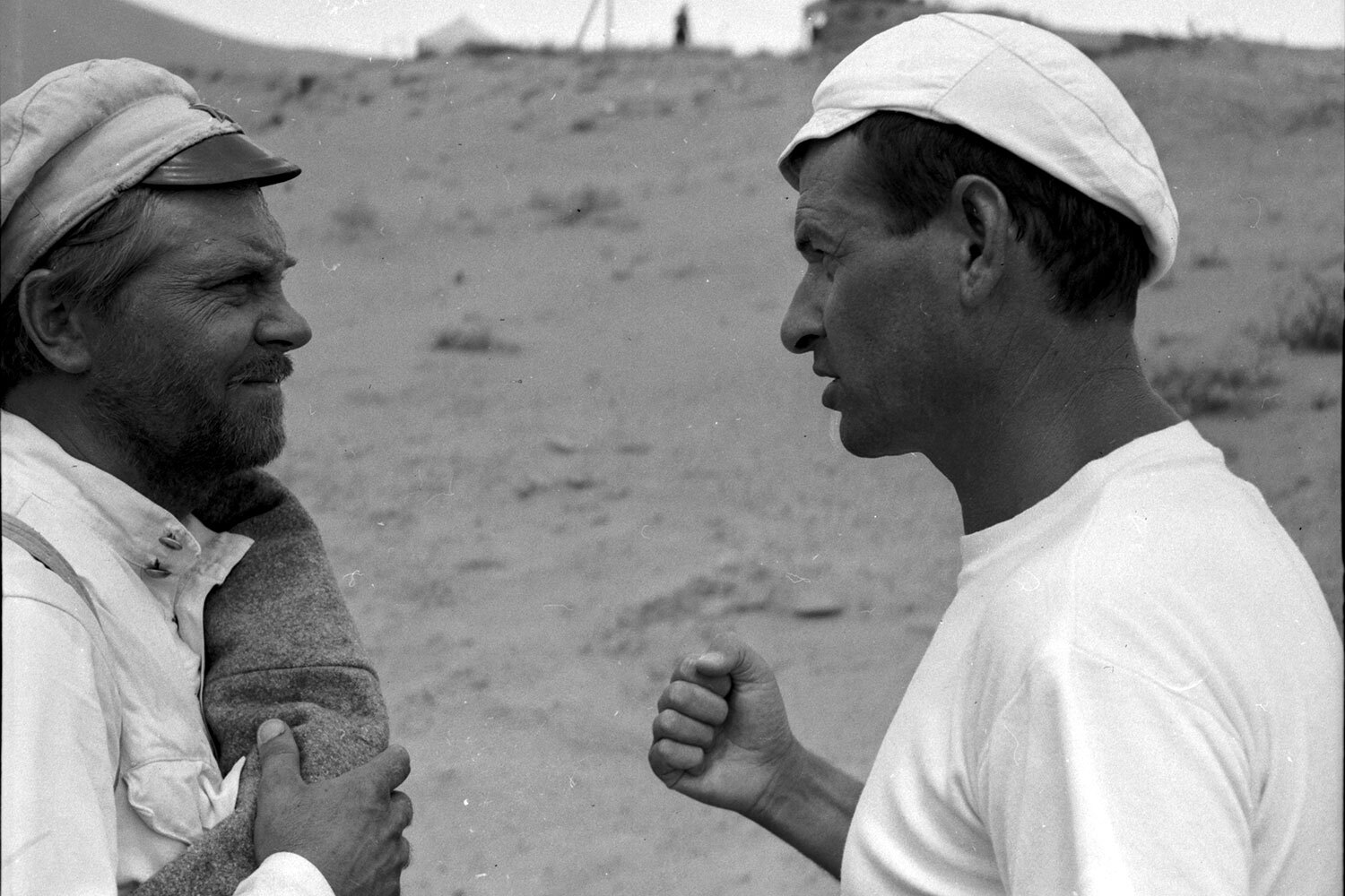 На фото: актеры Анатолий Кузнецов (Сухов), Спартак Мишулин (Саид) и съемочная группа фильма «Белое солнце пустыни».