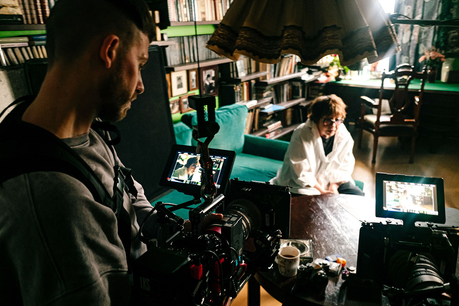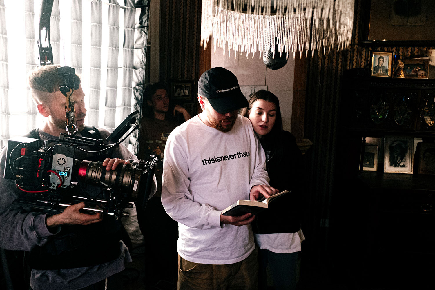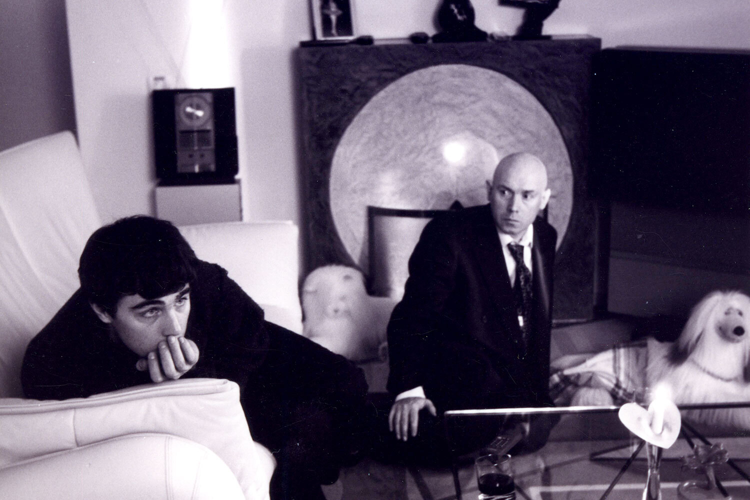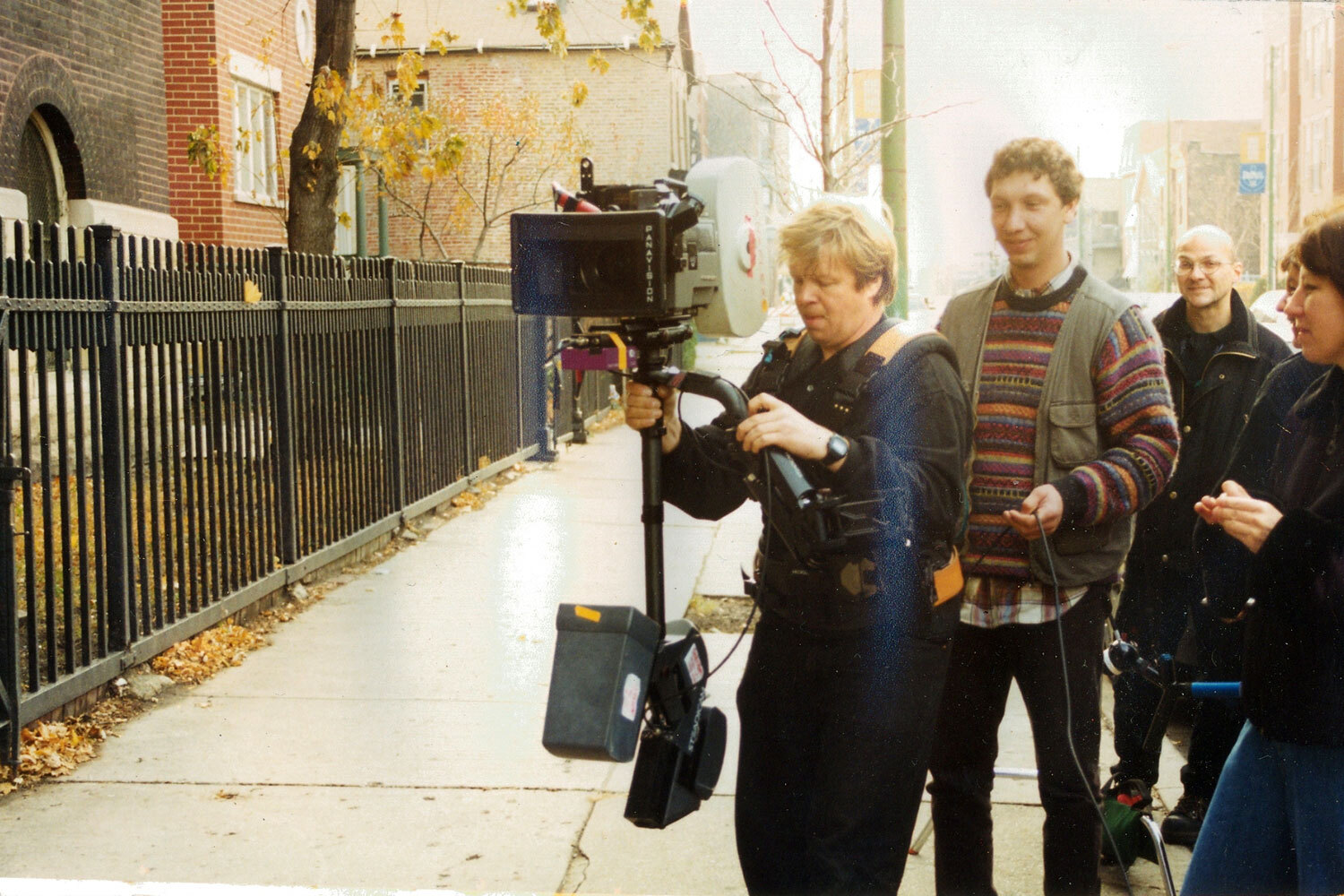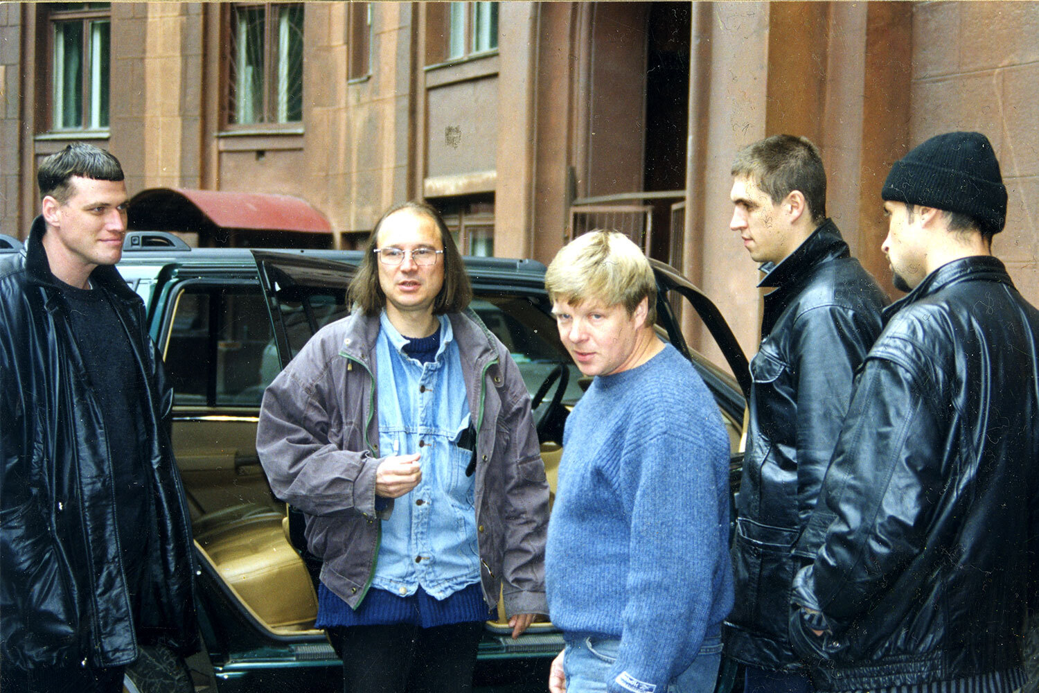 На фото: режиссер Алексей Балабанов (второй слева) и оператор Сергей Астахов (в центре) снимают «Брат-2» во дворе высотки на Котельнической набережной, где по сюжету проживает героиня Ирины Салтыковой.
