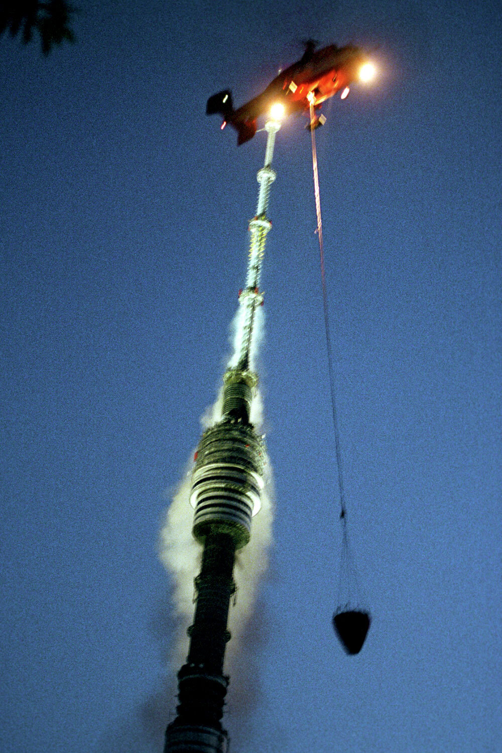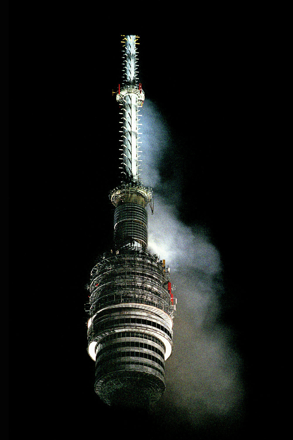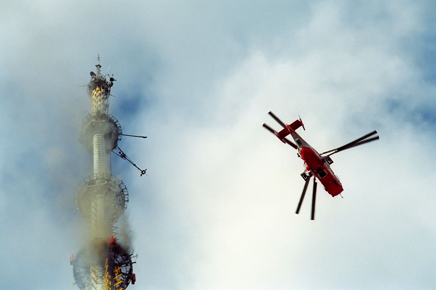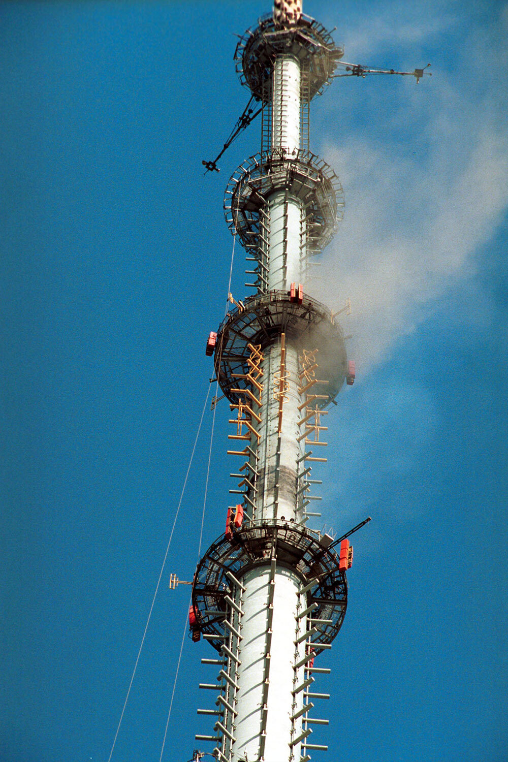 Антон Денисов/ ИТАР-ТАССВысота Останкинской телебашни 540 м. Внутри находится вертикальная шахта, в которой размещены лифты, металлические лестницы, антенные и электрические кабели. Башню построили в 1960-1967 гг. При ней еще при открытии создали отдел противопожарной службы из 16 специалистов. В мае 2000 г. пожарные проверили объект и сделали им 38 замечаний. Например, они остались недовольны системой оповещения и противодымной защитой. Перед возгоранием руководители телебашни ликвидировали 16 из 38 недостатков.